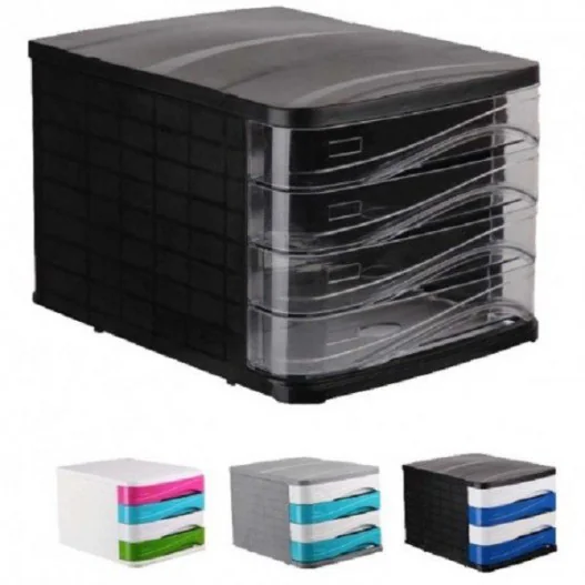 BLOC TIROIR ARK 4 ÉTAGES AVEC SERRURE ARK - Proportions idéales pour votre bureau - Matière: PVC - Avec poignée pour documents jusqu’au format A4 - Coulissement parfait des tiroirs - Couleur: Noir(Boîtier extérieur) & Transparent.