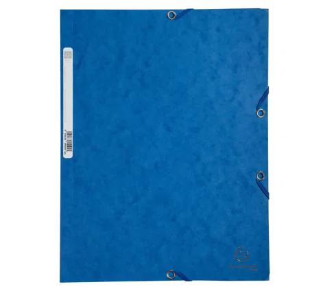 CHEMISE 3 RABATS À ÉLASTIQUE EN CARTON EXACOMPTA - MATIÈRE : Carton - EPAISSEUR MATIÈRE : 5/10E - GRAMMAGE MATIÈRE : 355 g/m2 - DIMENSION : 24x32 cm - FORMAT À CLASSER : A4 - CAPACITÉ (FEUILLETS 80GR.) : 150 - COULEUR: Bleu