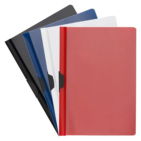 CHEMISE À CLIPS EN POLYPROPYLENE A4 - Dimension (Lxl): 21,8×30,5cm - Matière: Polypropylène opaque - Attache : clip en métal - Epaisseur matière: 4/10 mm (400µm) - Capacité: 30 feuilles - couleur: Noir, Vert, Bleu, Rouge