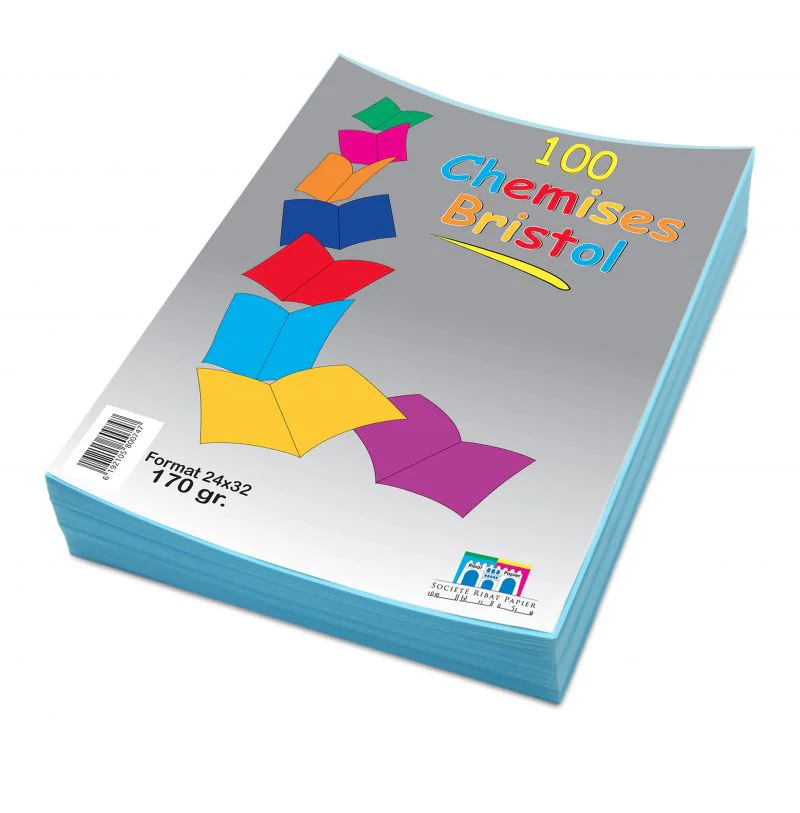 CHEMISE BRISTOL COULEURS BLEU PASTEL 170G - Format: 24 x 32 cm - Grammage: 170gr/M2 - Paquet de 100 - Couleur : BLEU Pastel