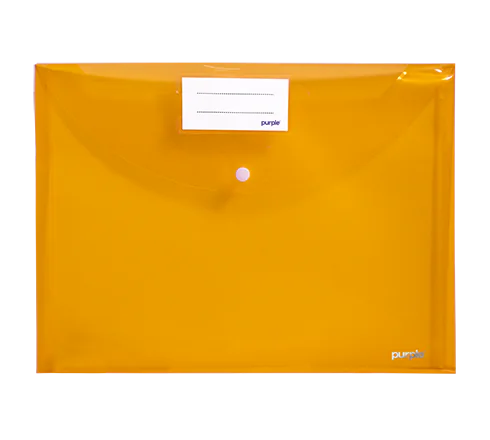 POCHETTE À BOUTON MAXI EN POLYPROPYLÈNE COLORPROTECT Dimension (Lxl): 38×26,5cm Matière: PP Épaisseur matière: 200µm Format à classer: A4 Maxi Etiquette/Encart: Etiquettes autocollantes Capacité: 50 feuilles Type fermeture à bouton de pression Couleur: Orange