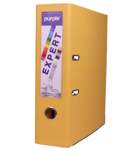 Classeur à levier dos 80 mm, offre une grande capacité de stockage pour vos documents importants. -Désignation Produit: Classeur à levier dos 80mm avec renfort métallique Expert -Matière: Carton recouvert de film papier polypropylène -Epaisseur matière: 2,3mm -Format à classer: 21X29,7cm (A4) -Etiquette: Oui -Capacité: 760 feuilles -Largeur de dos: 80mm -Nombre d’anneaux: 2 -Diamètre d’anneaux (mm): 80 -Couleur: Jaune