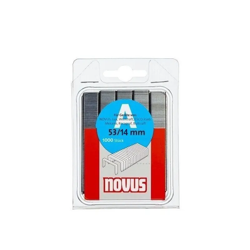 AGRAFES NOVUS 53/14 Agrafes pour les Agrafeuse Manuelle / Agrafeuse Cloueuse / Agrafeuse Électrique - Agrafe fine renforcée / textile - Longueur de l’agrafe : 14 mm - Largeur du dos : 11.3 mm - Boite de 1000 agrafes