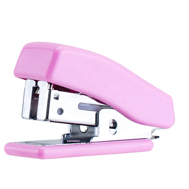 MINI AGRAFEUSE DELI-E0303 ROSE - Capacité d'agrafage : 25 feuilles - Capacité de chargement : 25 agrafes 24/6 et 26/6 - Construction métallique - Base antidérapante - Poignée souple - Couleur : Rose