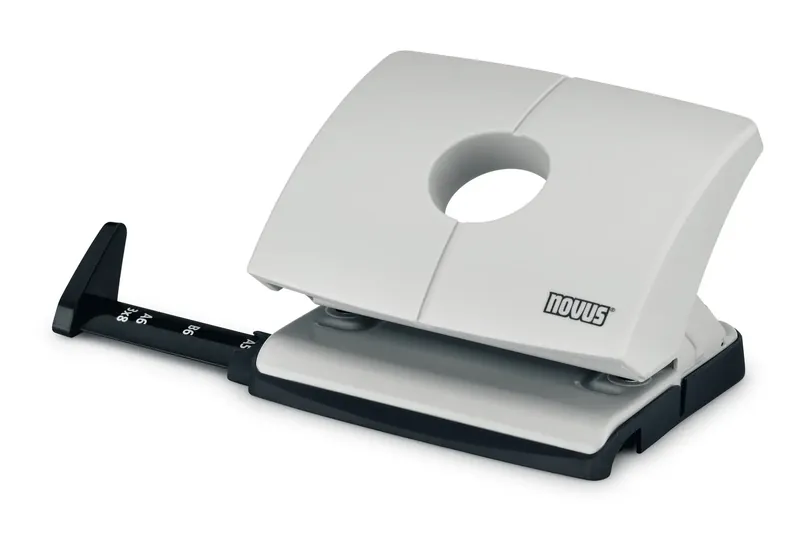 PERFORATEUR DE BUREAU NOVUS B 216 GRIS - 2 Trous - Cet appareil peut agrafer au maximum 16 feuilles (80g/m²). - Barre de butée à enclenchement sûr avec repères de format bien lisibles - Socle antidérapant avec ouverture facile pour le vidage - Appareil avec pièces fonctionnelles en métal - Diamètre des trous: 5,5 mm - Ecartement des poinçons: 80 mm - Couleur Gris