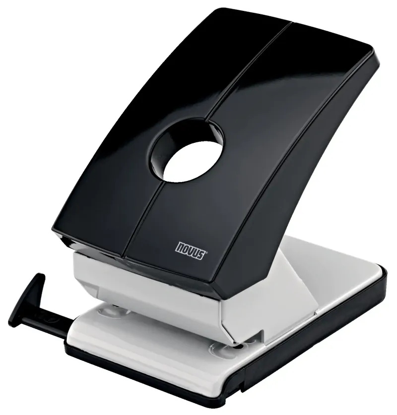 PERFORATEUR DE BUREAU NOVUS B 260 NOIR - 2 Trous - Cet appareil peut agrafer au maximum 60 feuilles (80g/m²). - Barre de butée à enclenchement sûr avec repères de format bien lisibles - Socle antidérapant avec ouverture facile pour le vidage - En métal avec coque ABS brillante très résistante - Diamètre des trous: 5,5 mm - Ecartement des poinçons: 80 mm - Verrouillage de la partie supérieure pratique pour un rangement peu encombrant - Couleur : Noir