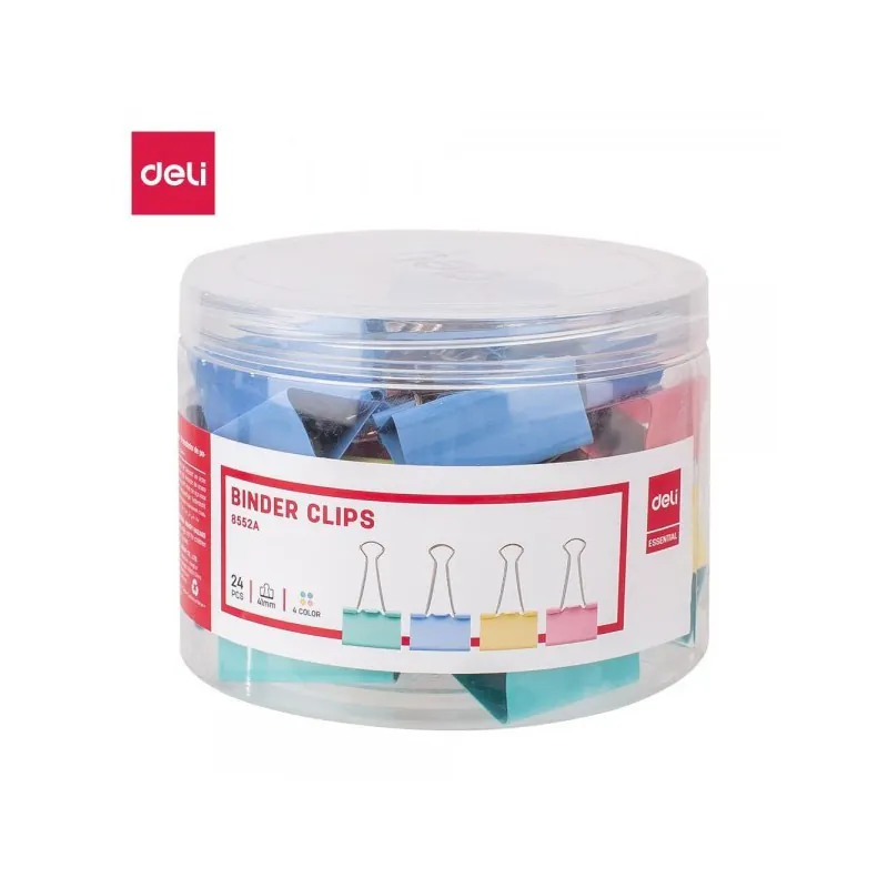 BINDER CLIP 51MM PAQUET DE 12 COULEUR ASSORTIS DELI - Ces clips métalliques sont parfaits pour classer les documents - Largeur 51 mm - Clips en acier à ressorts qui s'ouvrent facilement - Haute qualité et efficace - Poignée pliable pour faciliter le stockage - Couleurs : Rose, Bleu, Jaune et Turquoise