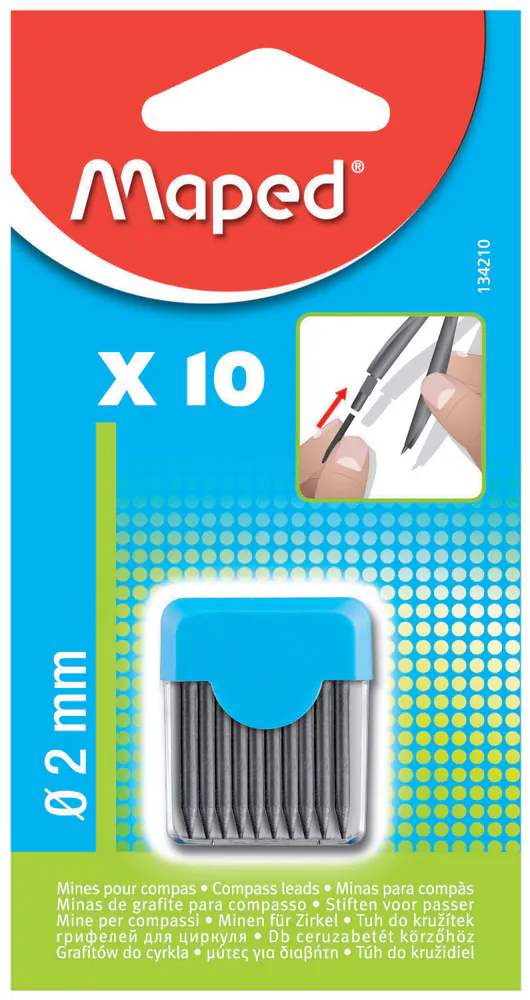 MINES POUR COMPAS PQT DE 10 MAPED - Etui comprenant 10 mines de compas - Diamètre de 2 mm - Pour tout compas