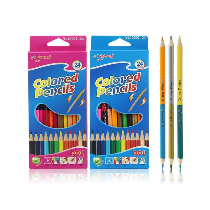 CRAYONS COULEUR DOUBLE TETE 24 COULEUR YALONG - Nombre de pièces : 12 pièces double tete 24 couleur - Corps hexagonal - Facile de tirer pointe - Couleurs vives