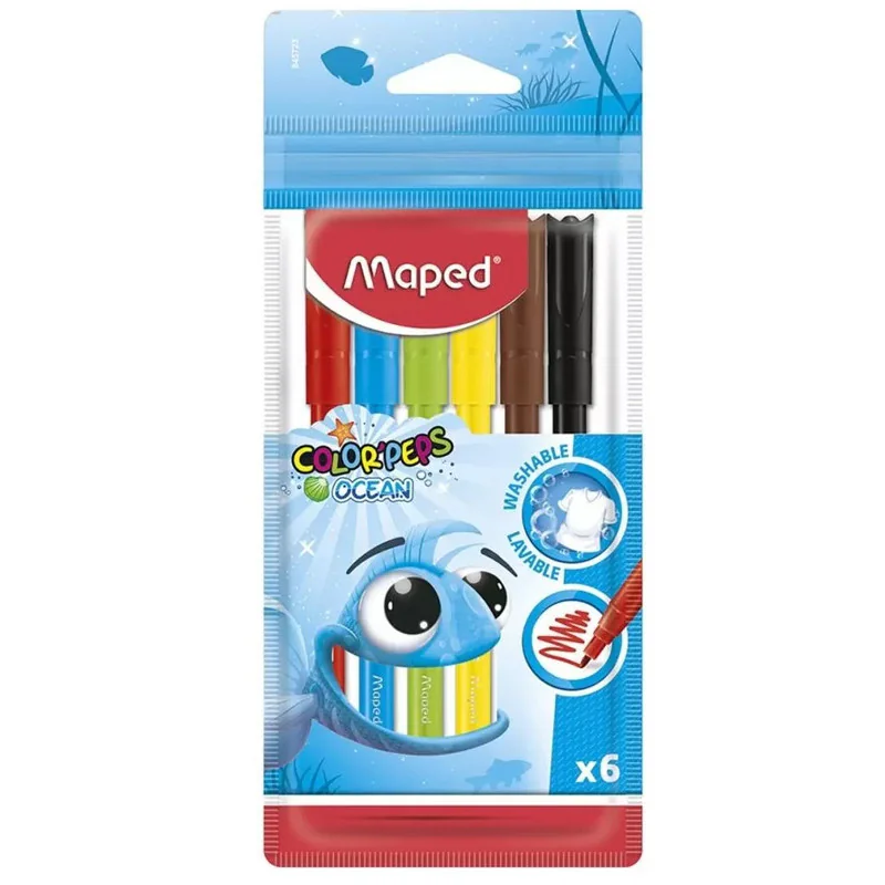 FEUTRES MAPED POCHETTE 6 COULEURS - Nombre de pièces : 6 pièces - Pointe : Moyenne - Trait: 2 mm - Encre ultra lavable - Parfait pour écrire & Dessiner