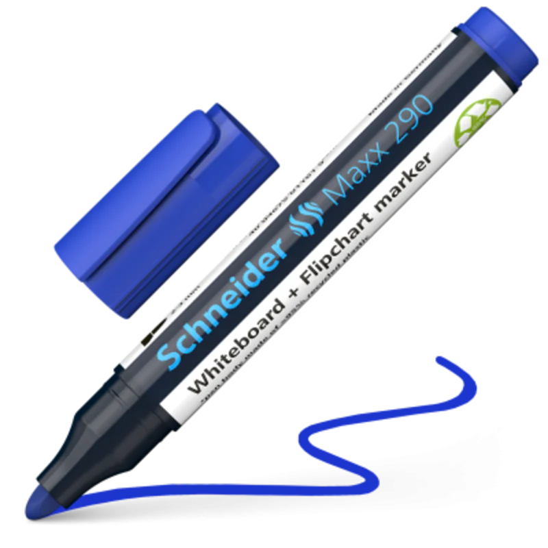 MARQUEUR POUR TABLEAU BLANC SCHNEIDER MAXX 290 BLEU - Idéal pour une utilisation sur tableaux blancs - Épaisseurs de trait: 2 à 3 mm - Effaçable à sec sans résidu - Visibilité supérieure, couleurs vives et séchage rapide - Encre cap-off, peut rester ouvert 2-3 jours - Rechargeable avec le flacon d'encre 665 - Couleur : Bleu