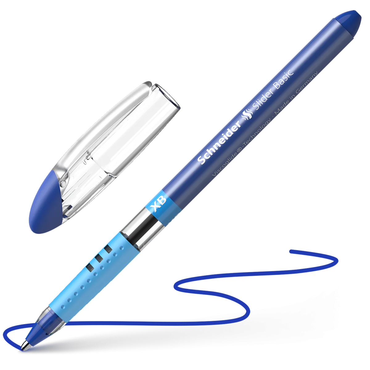 STYLO À BILLE SCHNEIDER SLIDER BASIC XB - Stylo à bille avec la technologie Viscoglide - Épaisseur de trait 1,4 mm - Pointe en acier inoxydable résistante à l'usure - Grip caoutchouté pour une prise en main sûre et décontractée - Couleur : Bleu