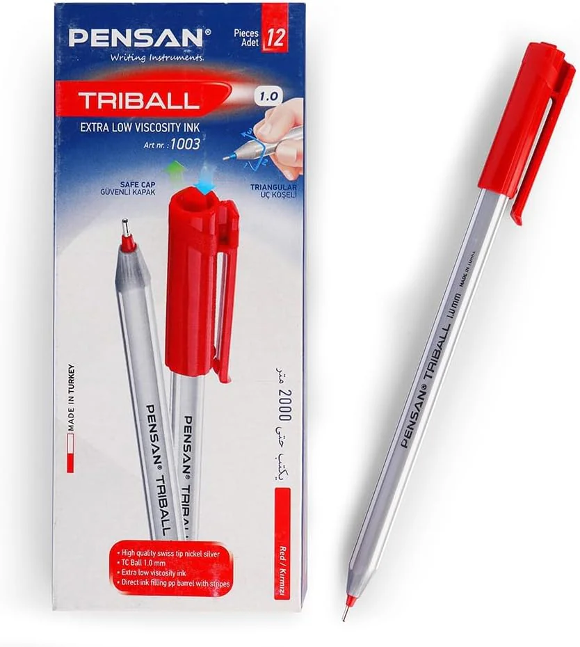 STYLO À BILLE PENSAN TRIBALL ROUGE - Largeur de trait : 1,0 mm - Lisse et confortable - Encre de qualité, séchage rapide et écriture douce - Corps gris et capuchon avec clip à la couleur de l'encre - Couleur: Rouge