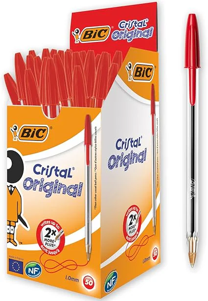 STYLO À BILLE BIC CRISTAL ORIGINAL ROUGE - Largeur de trait: 1,0 mm - Forme hexagonale pour une meilleure prise - Encre de qualité, séchage rapide et écriture douce - Corps transparent - Couleur : Rouge