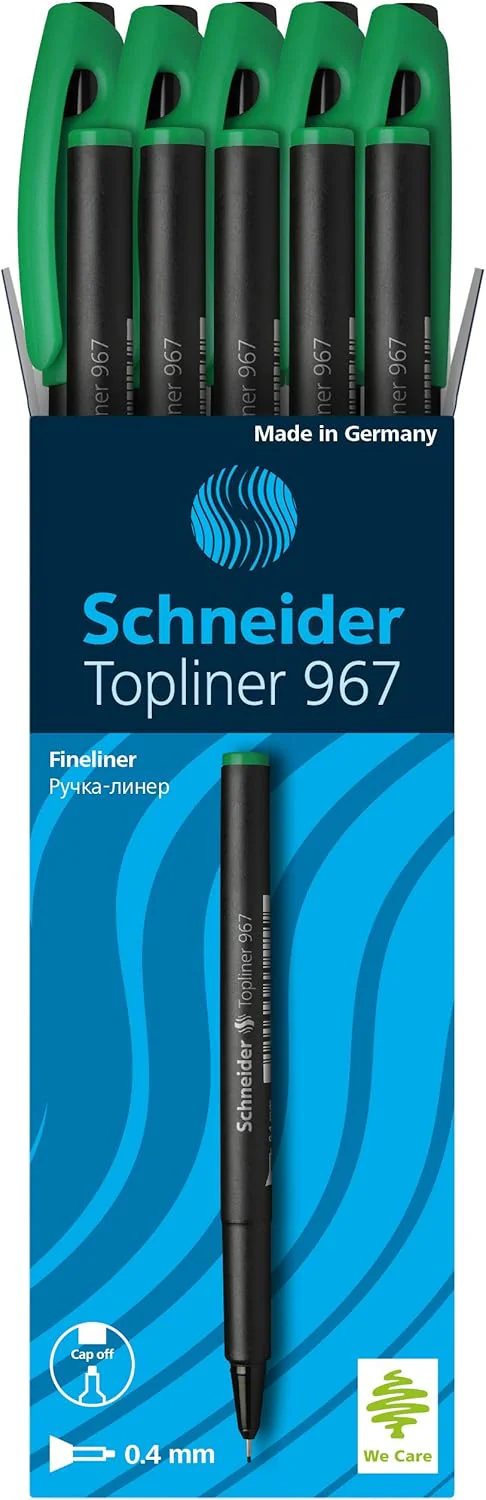 STYLO FEUTRE POINTE FINE SCHNEIDER TOPLINER 967 VERT - Largeur de trait: 0.4 mm - Pour une écriture fine et précise - Adapté pour le travail avec une règle et un gabarit - Encre cap-off, peut rester ouvert 2–3 jours - Respectueux de l'environnement et des ressources avec un corps composé à 82 % en plastique recyclé - Composants du corps en PP anti-évaporation pour une longue capacité de stockage d'encre - Couleur: Vert