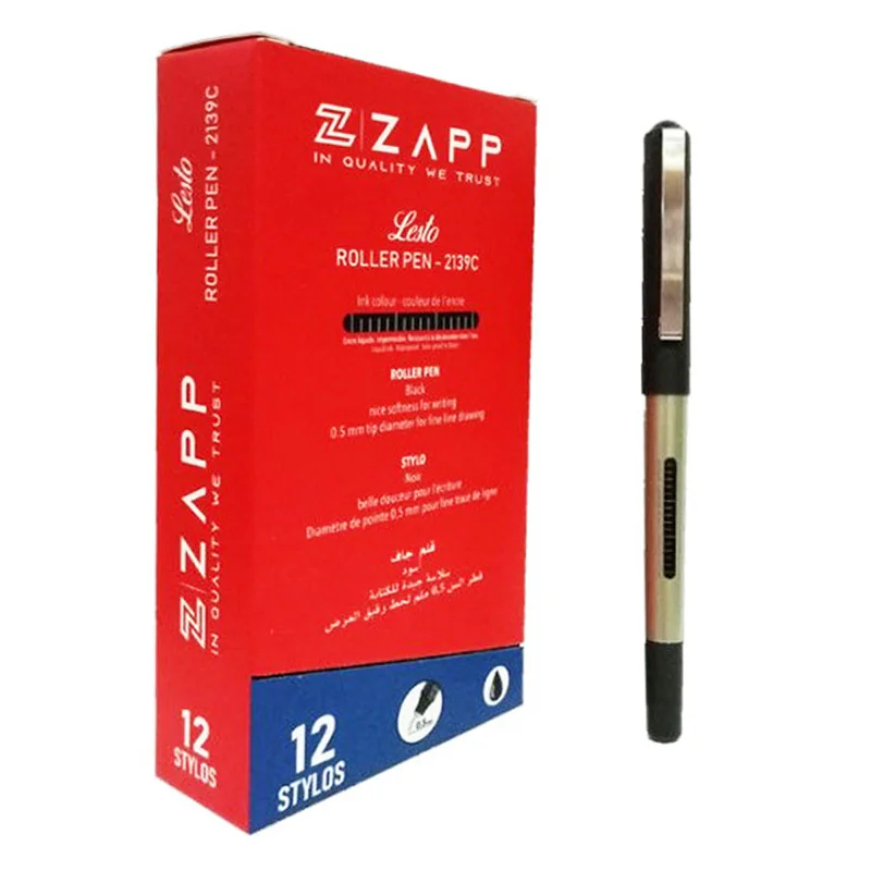 STYLO ROLLER-GEL ZAPP LESTO NOIR - Largeur de trait: 0.5 mm - Stylo de qualité, élégant et adapté à tous les temps - Lisse et confortable lors de l'écriture et conception qui s'adapte aux muscles de la main et des doigts - Indélébile et ne s'efface pas - Couleur : Noir
