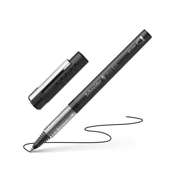 STYLO ROLLER-GEL SCHNEIDER XTRA 825 NOIR - Roller à encre avec Liquid-Ink-Technologie, couleur d'encre noir - Débit d'encre précis, du début à la fin - Epaisseur de trait env. 0.5 mm - Avec pointe conique en acier inoxydable résistante à l’usure - Grand volume d'encre avec indication de niveau - Clip en métal stable