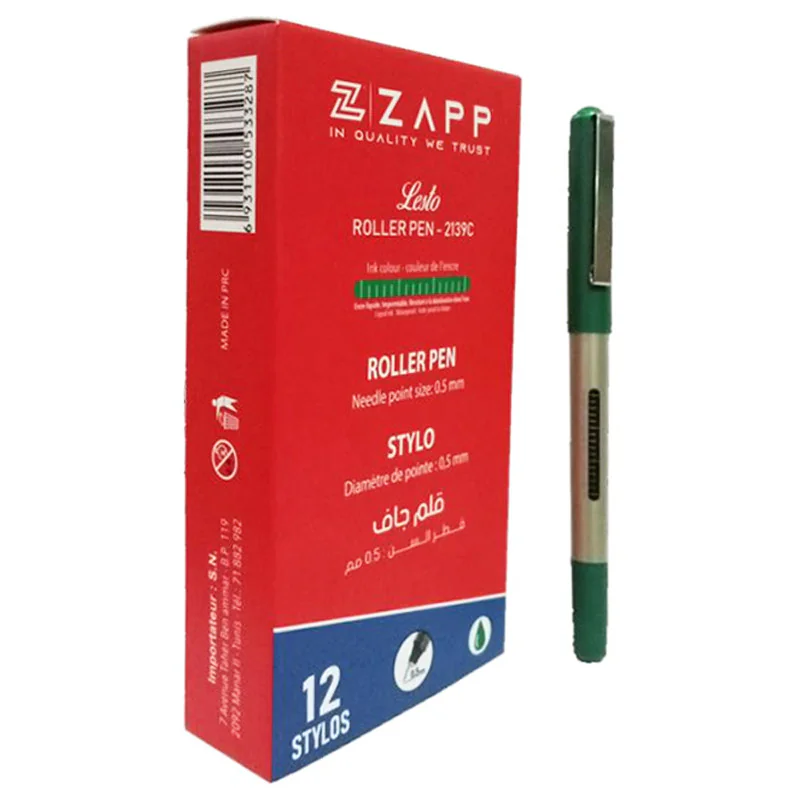 STYLO ROLLER-GEL ZAPP LESTO VERT - Largeur de trait: 0.5 mm - Stylo de qualité, élégant et adapté à tous les temps - Lisse et confortable lors de l'écriture et conception qui s'adapte aux muscles de la main et des doigts - Indélébile et ne s'efface pas - Couleur : Vert