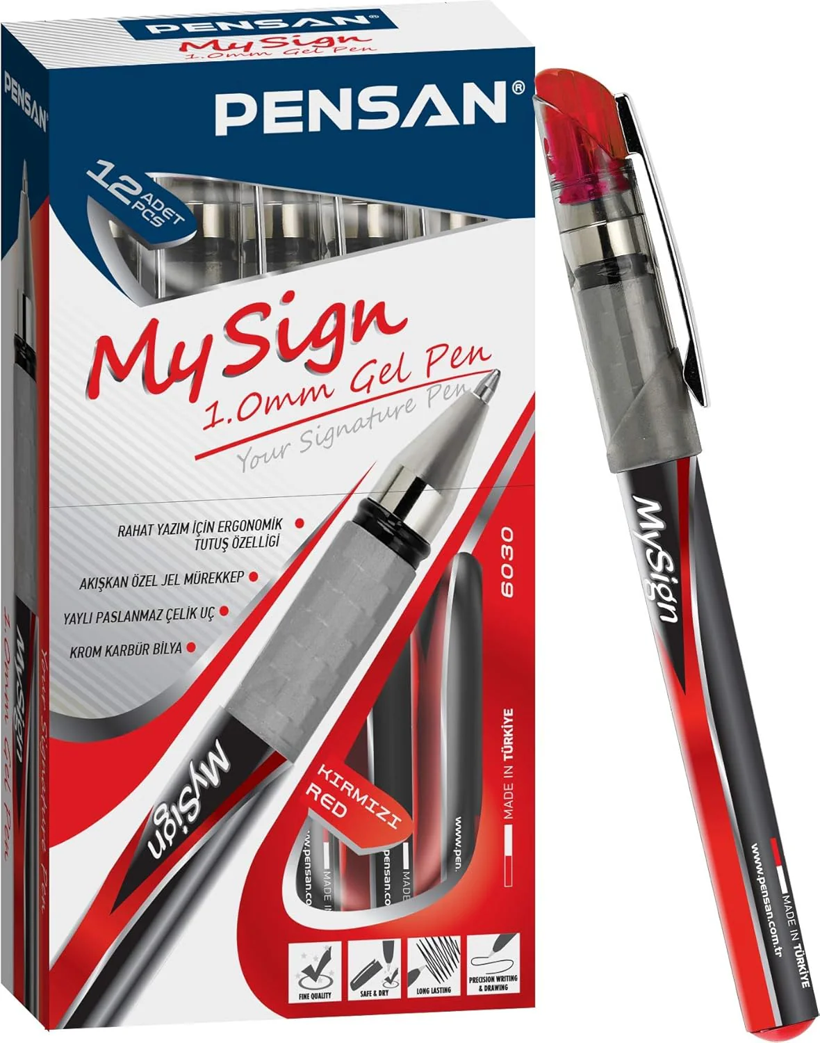 STYLO ROLLER-GEL PENSAN MY SIGN ROUGE - Largeur de trait: 1.0 mm - Le corps et la pointe du stylo sont idéaux pour une expérience d'écriture fluide - La pointe du stylo est extra douce - l'écrire sans interruption - Couleur : Rouge