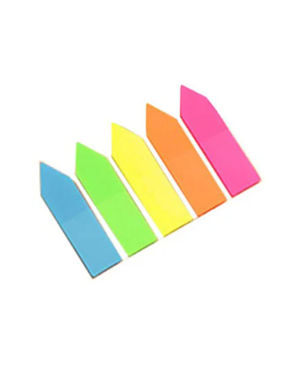Stick-note Flèche Fluo - Spécification: Languette 43 × 12 mm - Conditionnement : 20x5 - Couleur: jaune, orangé, vert, bleu, rose