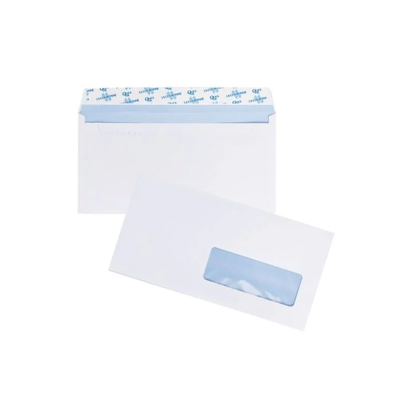 - Paquet de 500 Enveloppes - Format: 110 x 220 mm - Avec fenêtre 45x100 - Grammage Papier: 80 Gr - Fermeture sécurisée avec collage renforcé - Couleur: Blanc