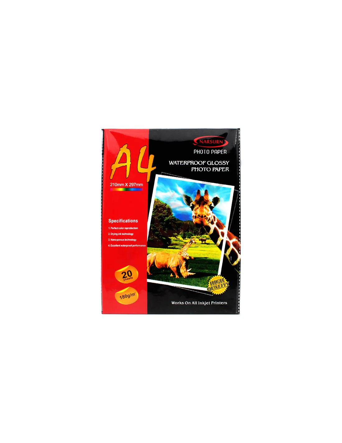 PAPIER PHOTO BRILLANT A4 - Grammage: 180 g/m² - Pour imprimante Jet d'encre